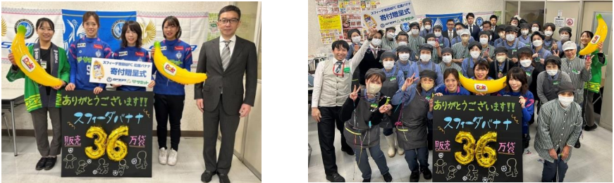 今回の寄付金は、2022年7月から2023年9月の販売によるもの。「スフィーダ世田谷FC 応援バナナ」は現在も販売中だ。