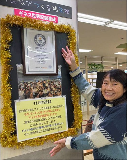 (株)平和堂(滋賀県彦根市、平松正嗣社長)は、滋賀県彦根市の「アル・プラザ彦根」4階にある「みんなの広場」に、2023年7月にギネス世界記録に認定された「手作りランタンでギネスに挑戦」の賞状を掲示している。