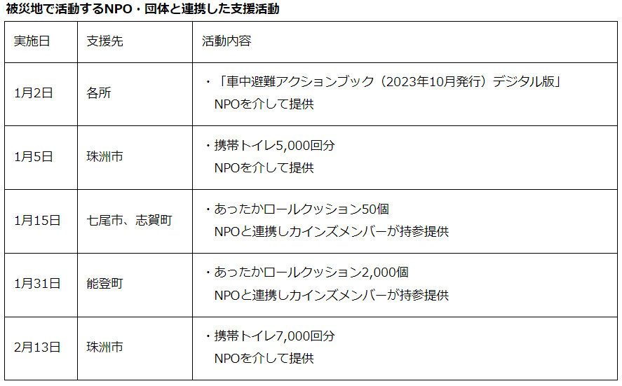 カインズnews|能登半島地震被災地への支援活動で店頭募金や物資提供