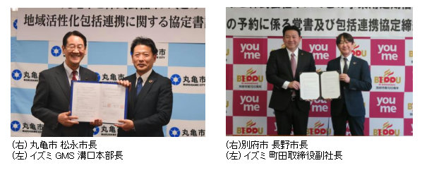(株)イズミ(広島県広島市、山西泰明社長)は、2月8日(木)に香川県丸亀市(松永恭二市長)と、2月9日(金)に大分県別府市(長野恭紘市長)と地域活性化包括連携協定を締結した。