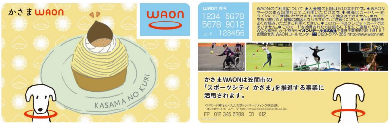 また協定の取り組みの一環として、イオンは今年3月末に、ご当地WAON「かさまWAON」を発行する。カード表面には、全国的にも有名な栗の産地として知られる「笠間の栗」をデザインし、裏面には「スポーツシティ かさま」を推進する事業に役立てることを記載して発行する。