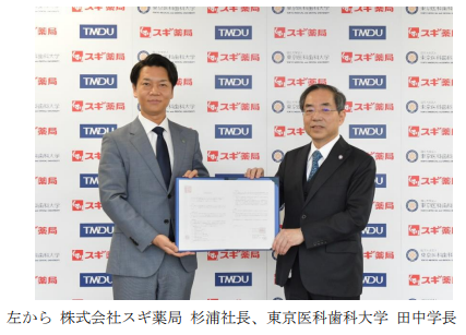 スギホールディングス(株)(愛知県大府市、杉浦克典社長)は、連結子会社である(株)スギ薬局(杉浦克典社長)と国立大学法人東京医科歯科大学(東京都文京区、田中雄二学長)が2024 年 4 月 1 日付けで包括連携基本協定書を締結したことを発表した。
