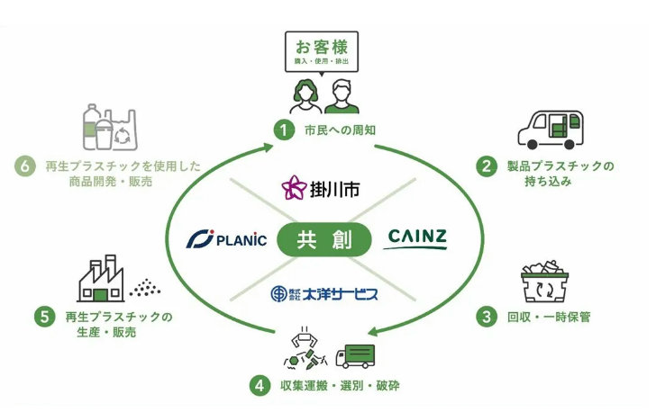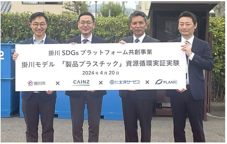 (株)カインズ(埼玉県本庄市、高家正行社長CEO)は4月20日(土)から9月30日(月)の期間、カインズ掛川店を拠点に、掛川市と再生プラスチック生産販売の(株)プラニック、収集運搬・選別・破砕の(株)太洋サービスとの共創事業として、掛川モデル「製品プラスチック」資源循環実証実験を開始した。