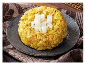 「砂丘らっきょう®添え ドライカレー」 は、スパイスの香りとバターのコクが感じられるドライカレーに、鳥取県名産の「砂丘らっきょう®」を組み合わせたおむすび。本体価格は180円(以下同)。