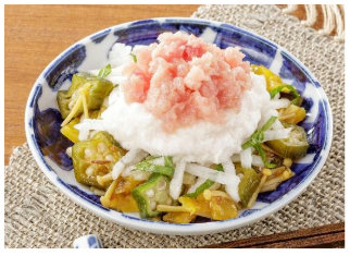 「ねばりっことまぐろたたきのねばねば小鉢」 は、鳥取県名産の長芋「ねばりっこ」を使用。シャキシャキ食感の大根と香りの良い大葉、甘みのあるたくあんなどを組み合わせ、様々な食感が楽しめるさっぱりとした味わいの惣菜。本体価格は330円。
