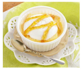 「白バラ牛乳使用 シフォンプディング」 は、「白バラ牛乳」を使用したプリン液をシフォンケーキに染み込ませてオーブンで焼き上げ、バニラミルクホイップとメープル風ソースを盛り付けたスイーツ。本体価格は350円。※同商品のみ販売エリアに岡山県が含まれる。