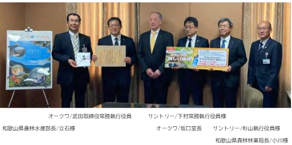 これは、サントリー(株)と実施したキャンペーンで、2023年2月28日~2024年3月20日の期間中にオークワ全店で「サントリー ザ・プレミアムモルツ」および「ザ・プレミアムモルツ香るエール」の販売本数1本につき0.5円を「紀の国森づくり基金」へ寄付するもの。寄付金額は販売本数に応じた金額にオークワが加算し、50万円とした。