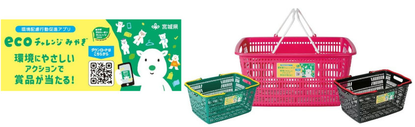 このマイバスケットには、バイオマス配合プラスチックを使用しており、不要になった場合は購入時に預かった代金を顧客に返金し、回収したカゴはリサイクルされる仕組みになっている。