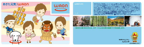イオンと秋田県は2011年6月、秋田県産品の地産地消や販路拡大、環境保全、観光振興など11項目について、相互が持つ資源を有効に活用し、秋田県の一層の活性化及び県民サービスの向上を目的に「包括連携協定」を締結した。その一環として、イオンの電子マネー「WAON」を通じて地域貢献につながるご当地WAON「あきた元気!WAON」を発行している。