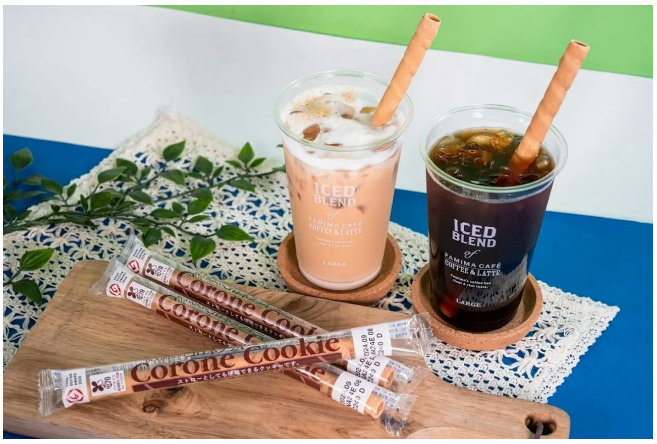 コロネクッキーは、ファミリーマートのカウンターコーヒー「ファミマカフェ」で展開するアイスコーヒーなどで利用可能。コロネクッキーを利用すると、店頭で配布するアイスコーヒー用のプラスチック製ストローよりも、プラスチック使用量の削減につながる。