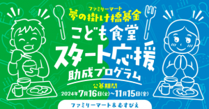 (株)ファミリーマート(東京都港区、細見研介社長)は、全国の子ども食堂の支援を行う「認定NPO法人全国子ども食堂支援センター・むすびえ」(東京都渋谷区、湯浅誠理事長)と連携して、子ども食堂を初めて開始する団体などを応援するための助成企画2024年度「子ども食堂スタート応援助成プログラム」の応募受付を7月から開始する。