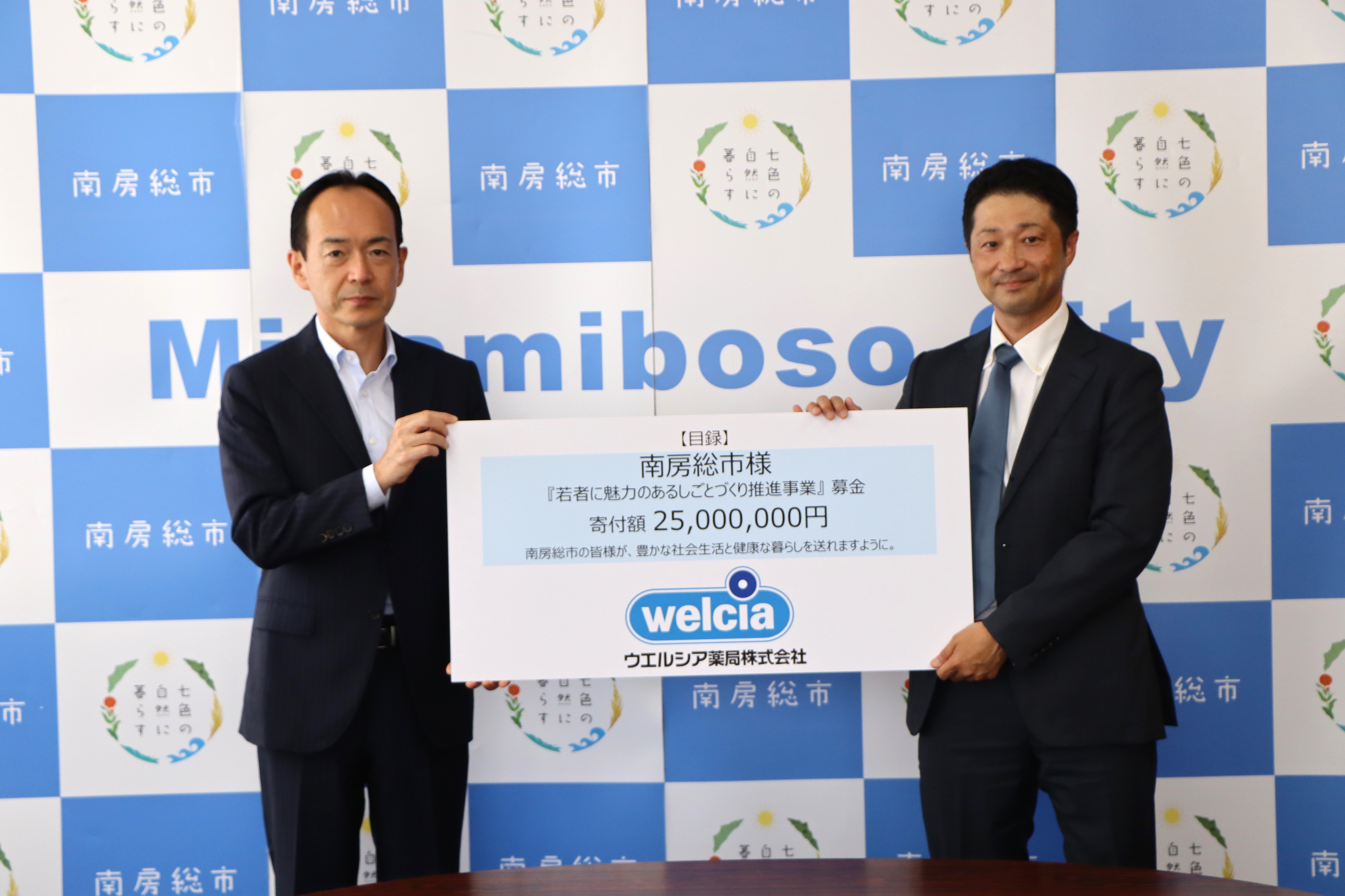 ウエルシア薬局(株)(東京都千代田区、田中純一社長)は、企業版ふるさと納税により、千葉県南房総市の「若者に魅力のあるしごとづくり推進事業」に対して2500万円を寄付した。