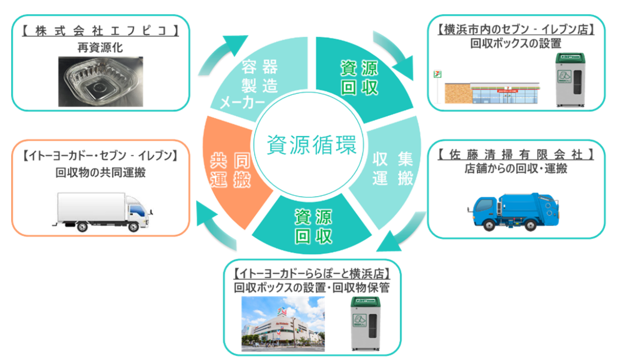 使用済みプラスチック透明トレーを回収し、再びプラスチックトレーへとリサイクルする「トレーtoトレー」だ。トレーの回収ボックスは地域活性化包括連携協定を締結している横浜市内のセブン‐イレブン横浜田奈駅東店、セブン‐イレブン横浜京急生麦駅前店の2店と、イトーヨーカドー ららぽーと横浜店に設置する。実施期間は6月24日(月)から12月31日(火)まで。結果を検証しながら、回収ボックス設置店舗の拡大を検討していく。