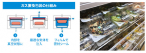 惣菜やサラダなどの一部商品に、特殊な包装技術であるガス置換方式を採用し、おいしさをそのまま保ちながら消費期限を1日~3日延ばす取り組みを行っている。ガス置換方式とは、容器内の空気を商品に適したガスに置き換える技術。ガスを密封するために、容器のふた部分をトップシール化することで、プラスチック使用量の削減にもつながる。