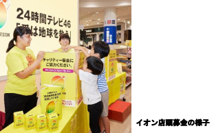 イオンは、この取り組みの趣旨に賛同して、2005年から、チャリティー募金活動に参加している。2023年度は6月から9月にかけて、「イオン」や「ダイエー」、「マックスバリュ」、「まいばすけっと」、「ミニストップ」など、全国のイオングループ83社、約9962カ所で募金活動を実施した。店頭で販売した「チャリTシャツ」の収益金と、顧客からの寄付金は、総額2億6682万9213円にのぼった。