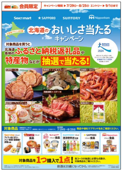 (株)セコマ(札幌市中央区、赤尾洋昭社長)グループ店舗では、7月29日(月)~8月25日(日)の期間、「北海道のおいしさ当たるキャンペーン」を実施する。