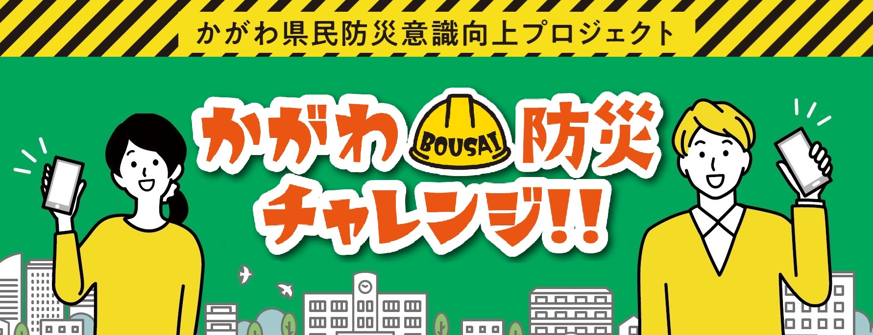 「かがわ県民防災意識向上プロジェクト」は、LINE上に開設した、「香川県公式防災LINEアカウント」を活用し、防災に関心がない人や関心はあっても時間がない人などに、防災をより身近に感じ、防災行動を行うきっかけとなってもらい、ひいては防災意識の向上を図ることを目的とした事業。