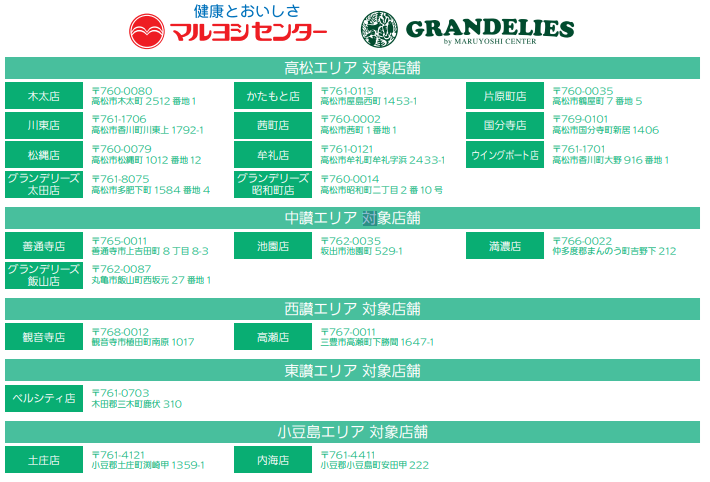 ちなみに「かがわ県民防災意識向上プロジェクト」の協力認証店舗は、イオン、ケーズデンキ、コープ、コメリ、DCM、西村ジョイ、ファミリーマート、フジ(フジグラン、マルナカ、マックスバリュ)、ゆめタウンなど。