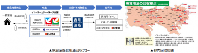 イトーヨーカ堂は、この貴重な資源を有効活用するため、2023 年 2 月に「イトーヨーカドーネットスーパー西日暮里店」にて、ネットスーパーを活用した家庭系廃食用油回収の実証実験を開始。その後、東京都と廃食用油回収促進に関する協定を締結し、都内の 3 店舗に回収拠点をあって