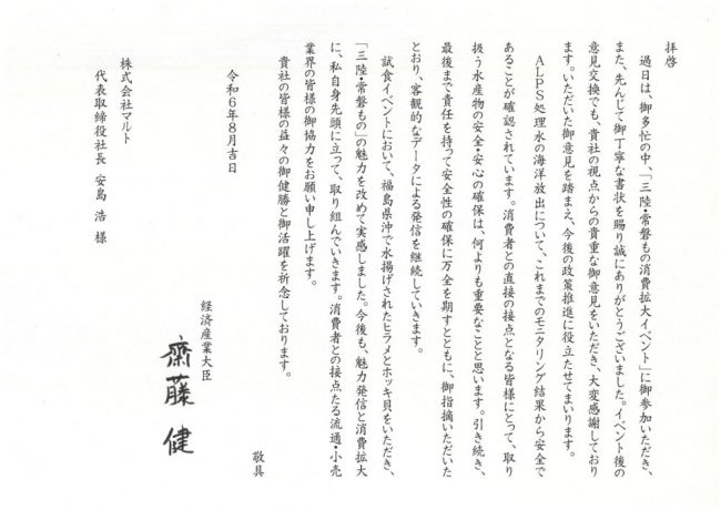 マルトnews|経産大臣より感謝状/三陸・常磐もの消費拡大イベント