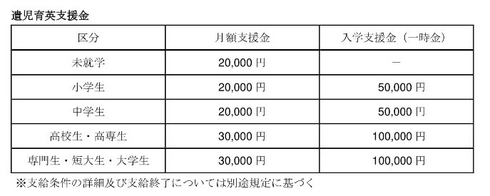 「遺児育英支援金」は、18歳(大学生は22歳)以下の子を扶養していた従業員が亡くなった場合、学業を奨励し、遺族家庭の経済的な負担を軽減することを目的としている。「遺児育英支援金」は最大642万円。支援金は在学区分に応じて、毎月支給する月額支援金と入学時に支給する入学支援金で構成される。