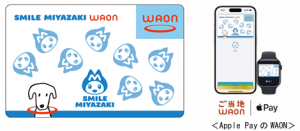 この協定の取り組みの一環としてイオンは 9月19日(木)に、ご当地WAON「SMILE MIYAZAKI WAON」を発行する。カード表面には、宮崎市出身の漫画家 東村アキコさんによる「宮崎市制100周年記念ロゴマーク」をデザインし、裏面には「宮崎市子どもの未来応援基金」に活用されることを記載している。