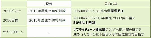 2030年目標は「CO2排出量を2013年度比で40%削減」から「50%以上削減」とし、2050年目標を「90%削減」から「CO2排出量実質ゼロ」と変更する。また、サプライチェーン排出量についても全国生協で排出量の算定を進め、将来的に2℃を十分に下回る水準で目標設定を目指す。