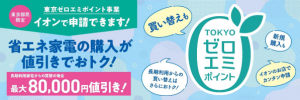 イオンリテール(株)(千葉市美浜区、井出武美社長)は 10月1日(火)、同日から刷新される東京都の「家庭のゼロエミッション行動推進事業」に参画する。東京都の「イオン」「イオンスタイル」など14店舗において、対象の省エネ性能家電を販売する際、「東京ゼロエミポイント」相当分の即時値引きを開始する。
