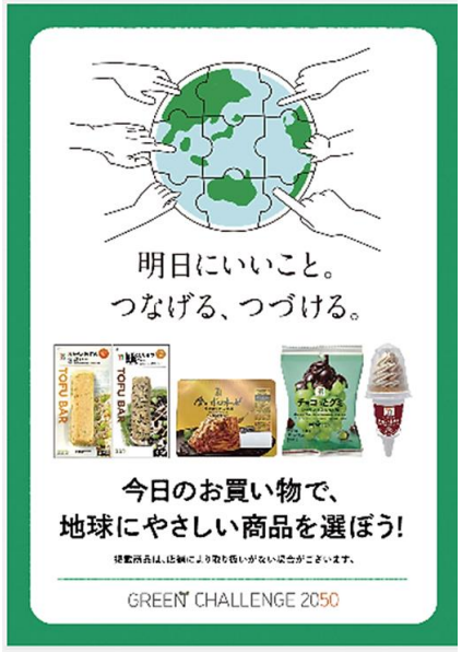 またセブン‐イレブンでは、食品ロス削減のための「てまえどり」や、プラスチック削減のためのカトラリーやレジ袋の辞退への協力を促すPOPの掲示やレジCMを配信する。