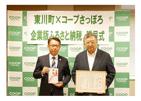 生活協同組合コープさっぽろ (札幌市西区、大見英明理事長)は、企業版ふるさと納税により、写真文化首都「写真の町」東川町に対して4000万円を寄付した。