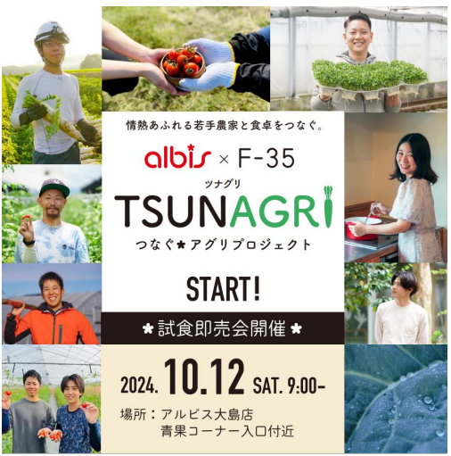 その「TSUNAGRI」のイベントとして、アルビス大島店で10月12日(土)に「野菜PR イベント」を開催する。イベントでは、F-35メンバーによる野菜の試食販売やミニクイズ大会、管理栄養士によるレシピ提案などを行う予定だ。