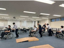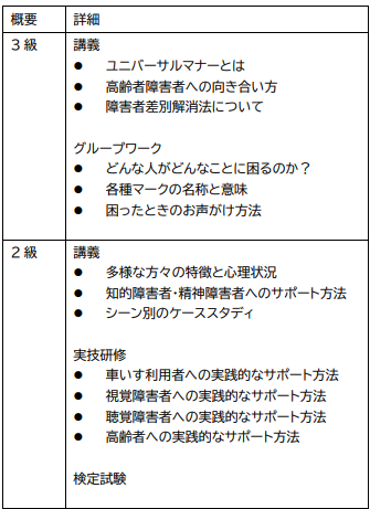 ユニバーサルマナー検定は、相手の視点やサポート方法がわからず、多様な人へのサポートや声かけをためらう状態を解消するための検定だ。この検定では、サポートを受ける側の心理や適切なコミュニケーションの取り方、具体的なサポート方法を座学、グループワーク、実践を通じて学ぶことができる。同社では、3 級と2 級の両方を受講している。