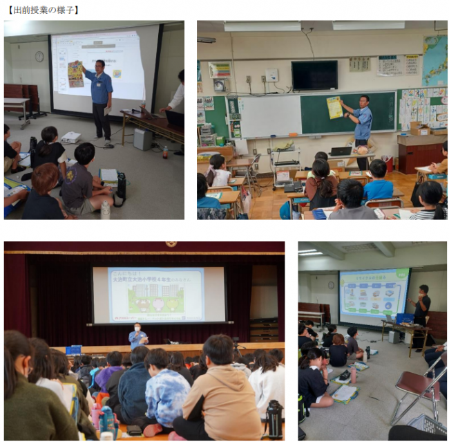 出前授業は、愛知県名古屋市の五反田小学校の小学3年生90名、愛知県海部郡の大治南小学校の小学4年生110名、おなじく愛知県海部郡の大治小学校の小学4年生150名にむけて、計3回実施した。