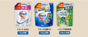 2024年3⽉にツルハグループ限定で発売した「アタック」「ハミング」⼤容量詰め替え商品の売上げの⼀部を⼀般社団法⼈「SD BlueEarth・⻘い地球を育む会」に寄付することで、同法⼈が推進する「プラギョミ0プロジェクト」等の環境課題解決のための活動を⽀援する。