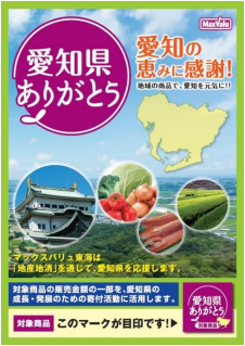 2023年3月1日~2024年2月29日の期間にマックスバリュ東海の店舗で購入された「愛知県ありがとう」キャンペーン対象商品の売上げの一部220万7784円を愛知県「環境保全基金」に贈呈する。寄付金は愛知県の環境保全活動に役立てられる。