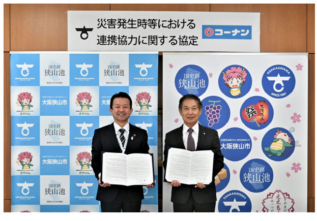 コーナン商事(株)(大阪市淀川区、疋田直太郎社長)は1月21日(火)、大阪府大阪狭山市(古川照人市長)と「災害時における連携協力に関する協定」を締結した。