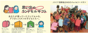 イオン(株)(千葉市美浜区、吉田昭夫社長)は、「世界のより多くの子どもたちのために学習環境の充実を支援したい」という想いから、国際協力NGOジョイセフの支援活動「思い出のランドセルギフト」プロジェクトに賛同している。「思い出のランドセルギフト」は、アフガニスタンの子どもたちに使っていないランドセルを寄付する国際支援活動。