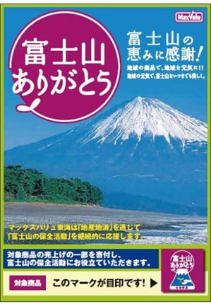 「富士山ありがとう」キャンペーンは地産地消の推進及び富士山にゆかりのある商品の販売を通じ地域の活性化を図るとともに、富士山の美化・環境保全活動を応援する取組み。