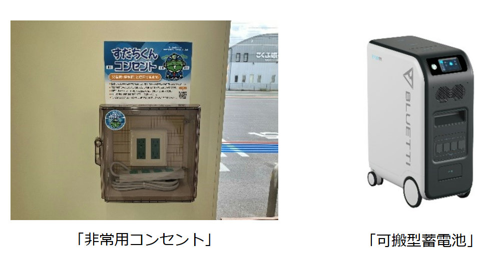 非常用コンセントを設置した8店舗にはいずれも太陽光発電設備があり、大規模災害が発生し周囲が停電した場合でも電力を供給することができ、携帯電話などの充電が可能。徳島県は同コンセントを「すだちくんコンセント」として認定するとともに、SNSやホームページで情報発信することで地域の防災力向上を図る。