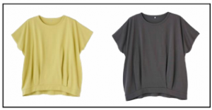 持続可能な生産手法によって栽培された綿を使用したウエストタックのTシャツ。ひんやり心地よい接触冷感機能付き。レディース フレンチTシャツ 2849円。