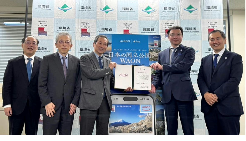 イオンリテール(株) (千葉市美浜区、古澤康之社長)は4月14日(月)、「日本の国立公園WAON」の利用金額の一部139万0868円を(一財)自然公園財団に寄付金として贈呈した。