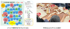 今回のコラボイベントでは、コカ・コーラ ボトラーズジャパンの協力を得て、ペットボトルの誕生からリサイクルまでの仕組みが理解できる「ペットボトルキャップの一生すごろく」や、エコバッグペイント体験を開催し、参加者同士が楽しく学べる場を提供する。