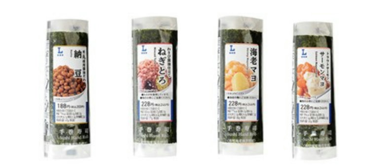 (株)ローソン(東京都品川区、竹増貞信社長)は、手巻寿司の定番4商品(納豆・ねぎとろ・海老マヨ・サーモンマヨ)の消費期限を現行品と比較して6時間延長する規格変更を行い、5月13日(火)から全国のローソン店舗約1万4023店舗で発売する。