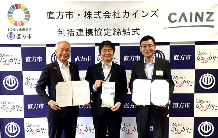 (株)カインズ(埼玉県本庄市、高家正行社長CEO)は5月23日(金)、福岡県直方市と「包括連携協定」を締結した。