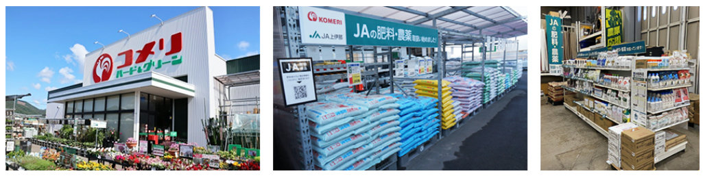 今回の山梨県4店舗との協業開始により、合計6JAとの協業関係となり、JA商品を取り扱うコメリの店舗数は、山梨県内:4店舗、長野県上伊那地域:8店舗、山形県置賜地域:8店舗、和歌山県内:3店舗、三重県内:16店舗の合計39店舗となった。