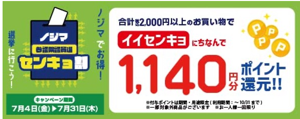 ノジマnew|参議院選でポイント還元の「センキョ割」実施/若い世代の投票促す