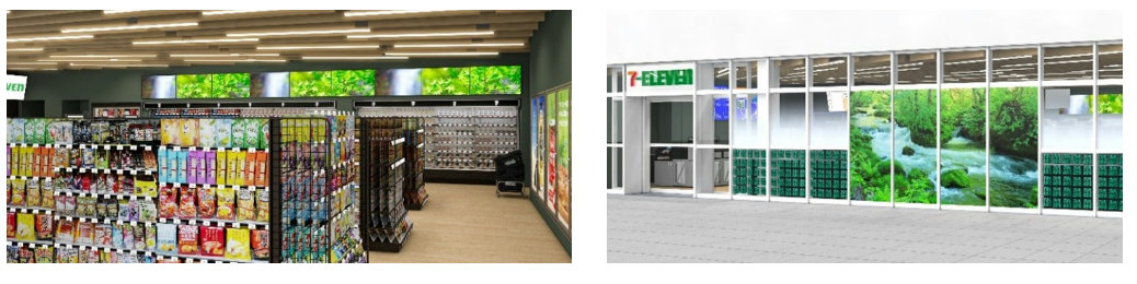 7月25日(金)からは夏季限定で、1日に複数回、店内外のサイネージで清涼感のあるイメージ映像を放映する。西ゲート店では店頭・ドリンク売場・冷蔵ケース上で、ウォータープラザ店では冷蔵ケース上に設置されたサイネージで放映する。