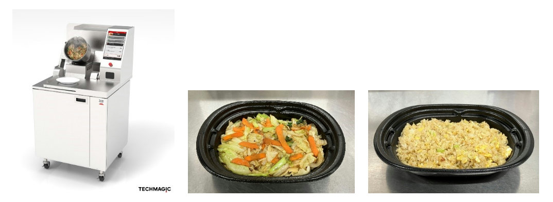 導入する調理ロボI-Robo 2は、TechMagicが飲食店用として熟練職人の鍋さばきを半年間研究し開発したロボット。強い火力が求められる「炒飯」や「野菜炒め」などの炒めるメニューを、安定した品質の商品として約1分半~2分半で誰でも簡単な操作で調理することが可能だ。