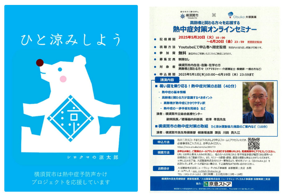 横須賀市では、市内全14店舗で「ひと涼み施設」として店舗の開放と、熱中症対策商品コーナーの設置、熱中症に関する啓発の取り組みを行う。