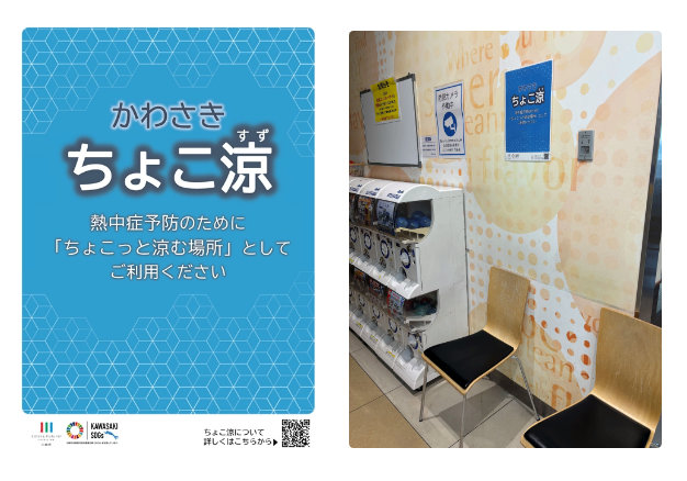 川崎市では、市内の「京急ストア新川崎店」「もとまちユニオン日吉店」の2店舗で、一時的に暑さをしのぐ場所「かわさきちょこ涼」として店舗施設を登録している。さらに川崎市のウォーキングアプリ「かわさきTEKTEK」のポイントゲットイベント「ちょこ涼TEKTEK」にも協力している。